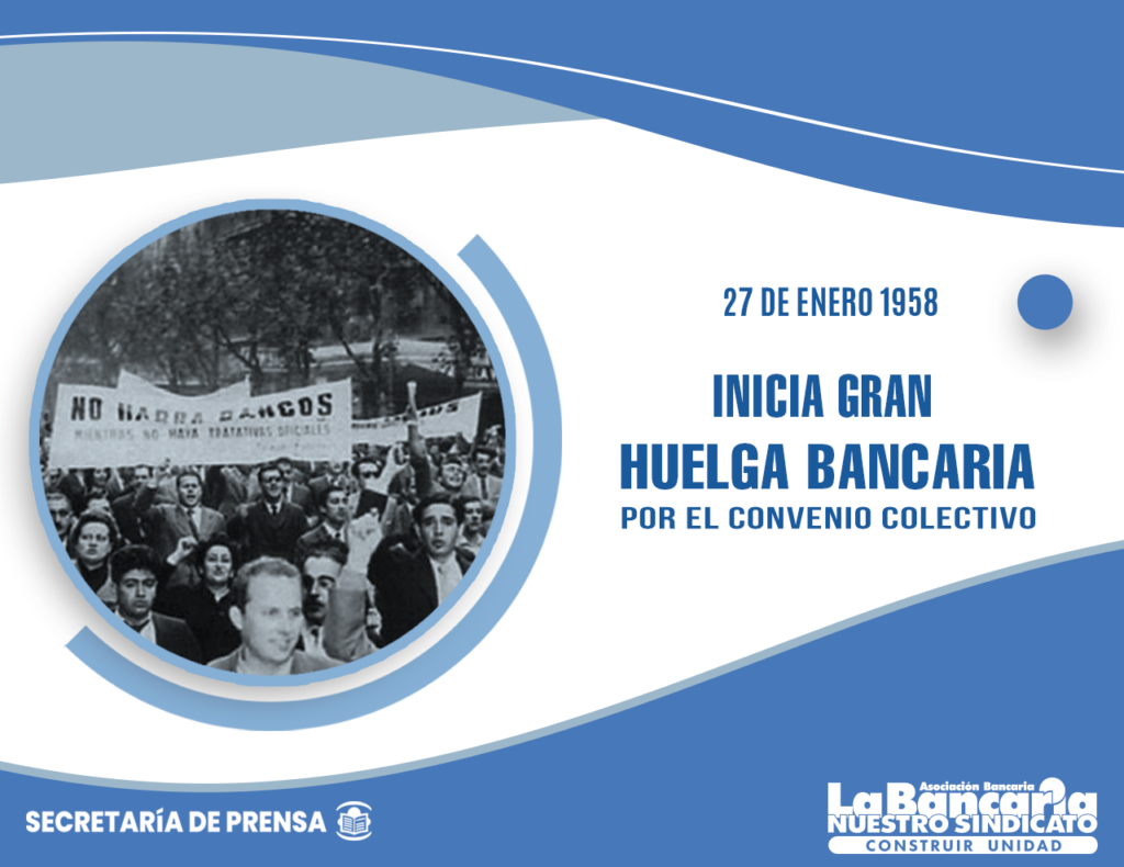 En 1958 la Asociación Bancaria protagonizó una movilización impresionante para reclamar por las injusticias ejecutadas por el gobierno de facto de Pedro Aramburu. Así, el gremio realizó un paro de 52 días motorizado en defensa de los compañeros.