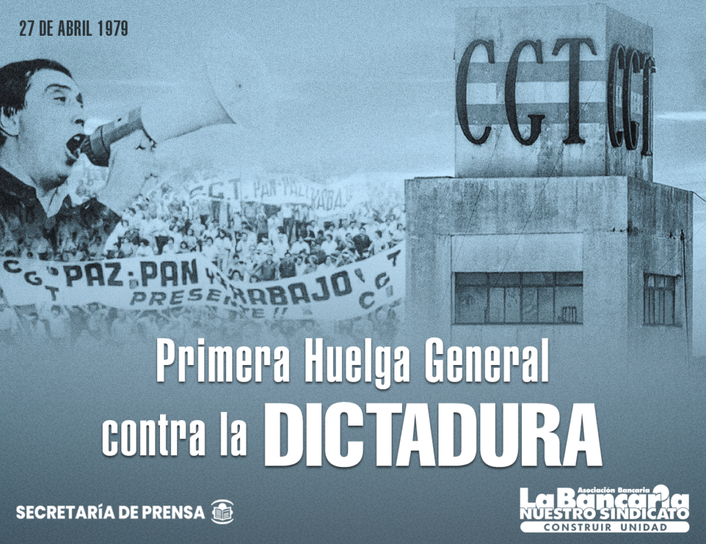 El 27 de abril de 1979 se realizó la primera huelga general contra la Dictadura Cívico Militar. Pese al tremendo aparato represivo, entre un 70 y 80 por ciento de los asalariados de la Capital y el Gran Buenos Aires detuvieron sus tareas en repudio a la política económica del gobierno y su secuela de torturados, presos, asesinados y desaparecidos.