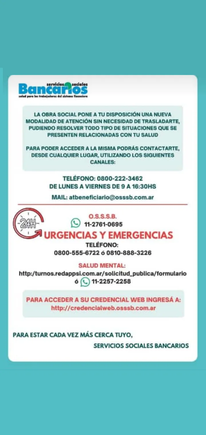 Para estar cada vez más cerca tuyo, la Obra Social Bancaria pone a tu disposición una nueva modalidad de atención sin necesidad de trasladarte.